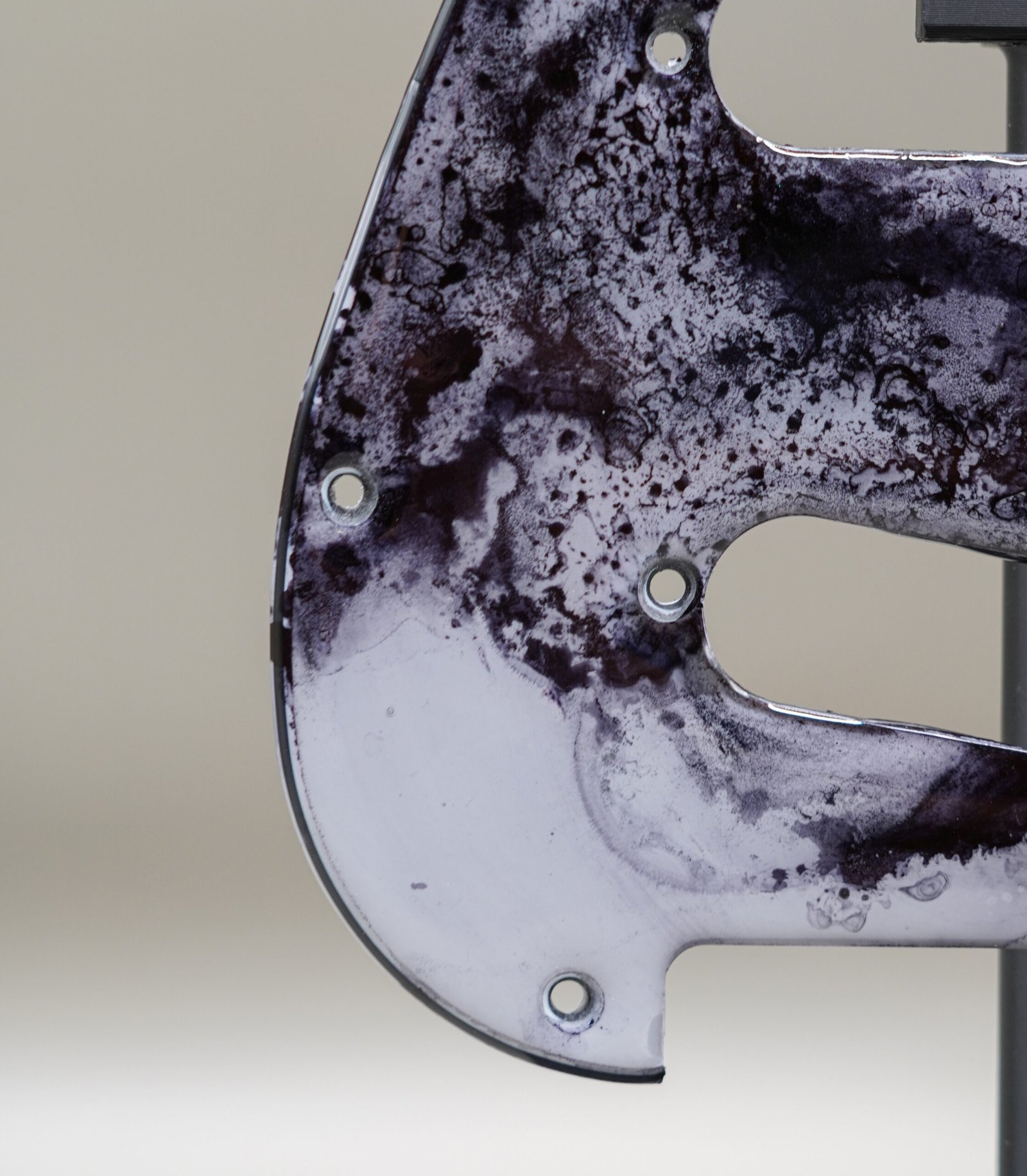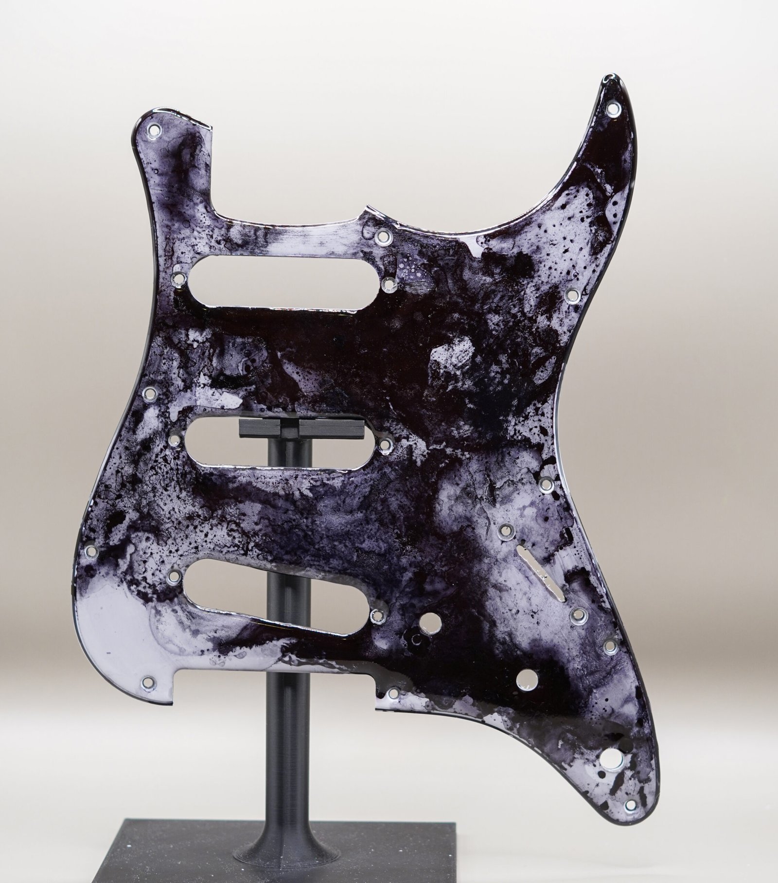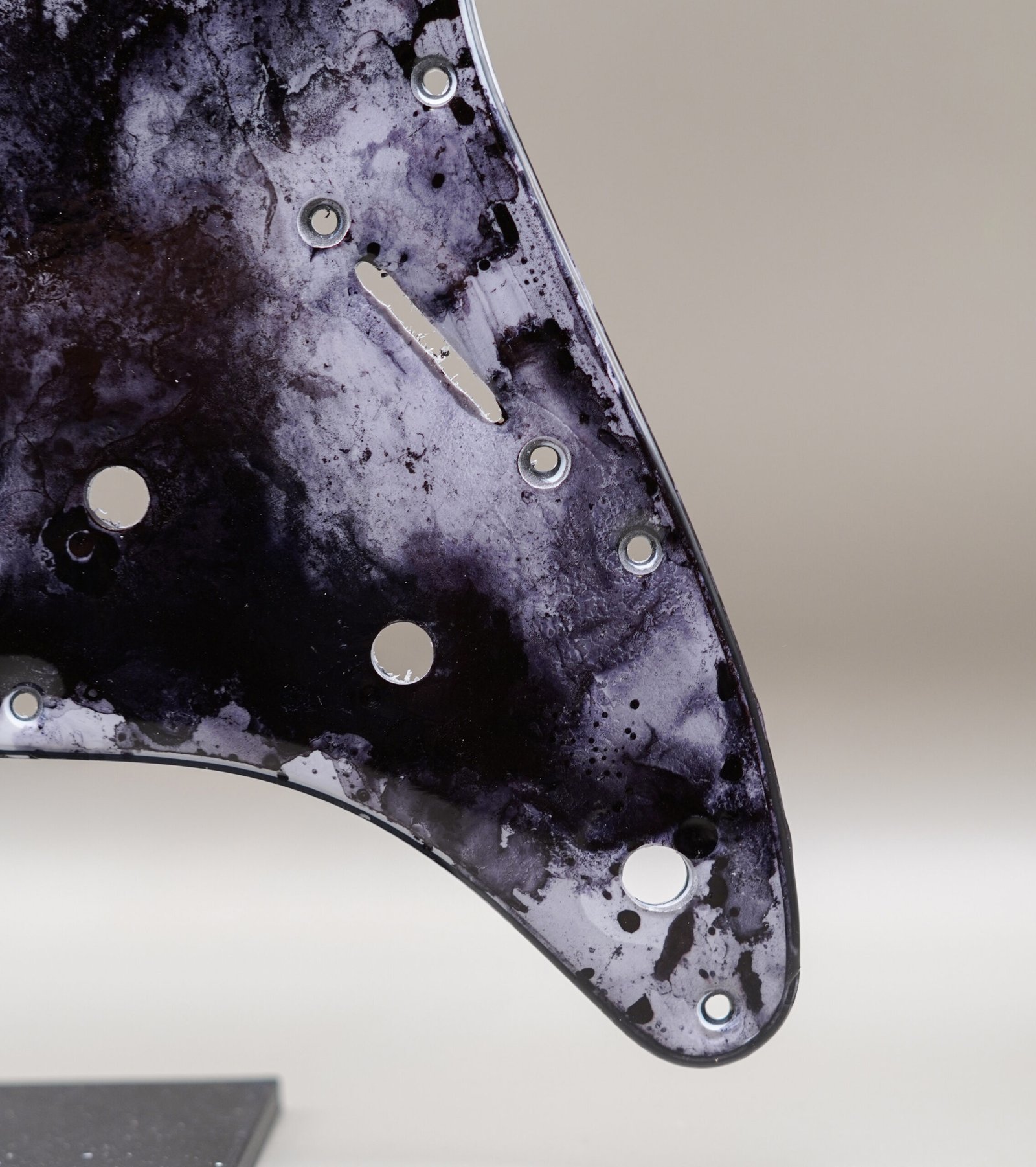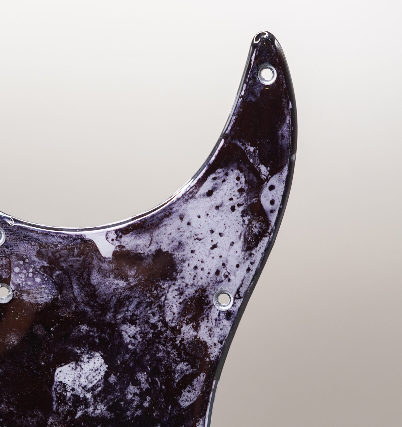This pickguard brings a quiet uniqueness to the instrument, combining fine-art surface work with the durability of resin.