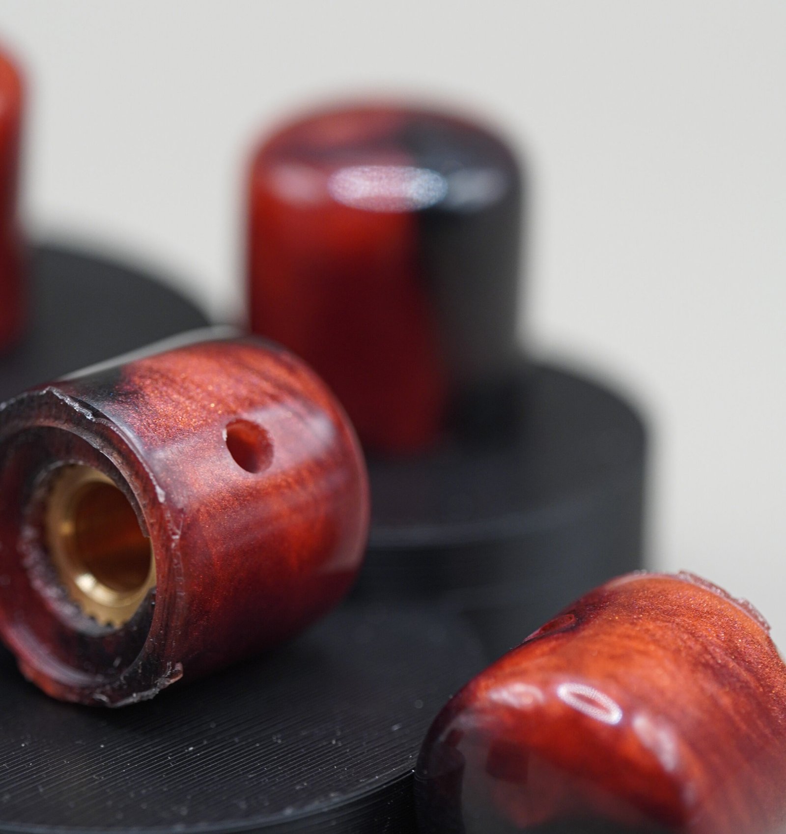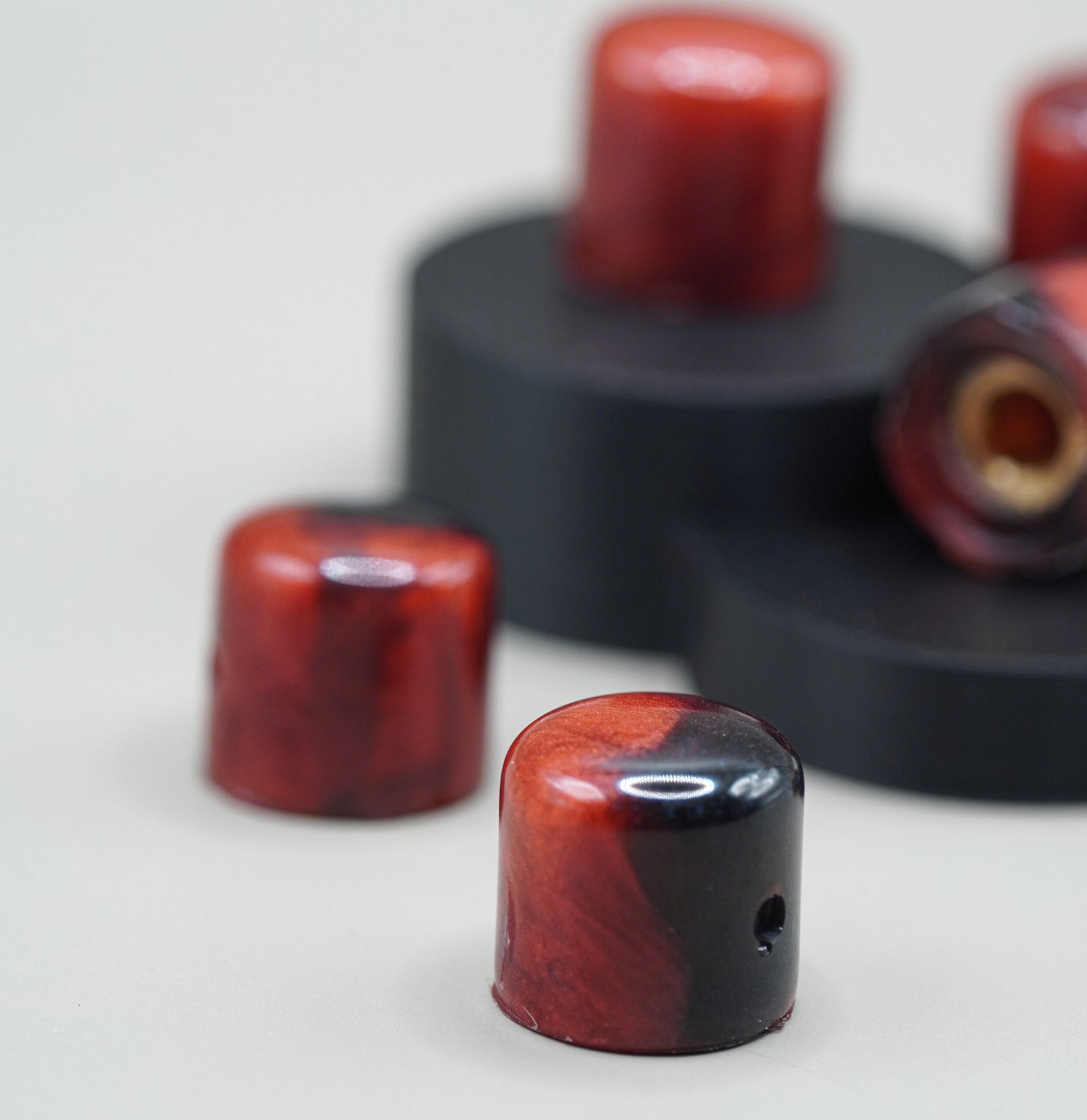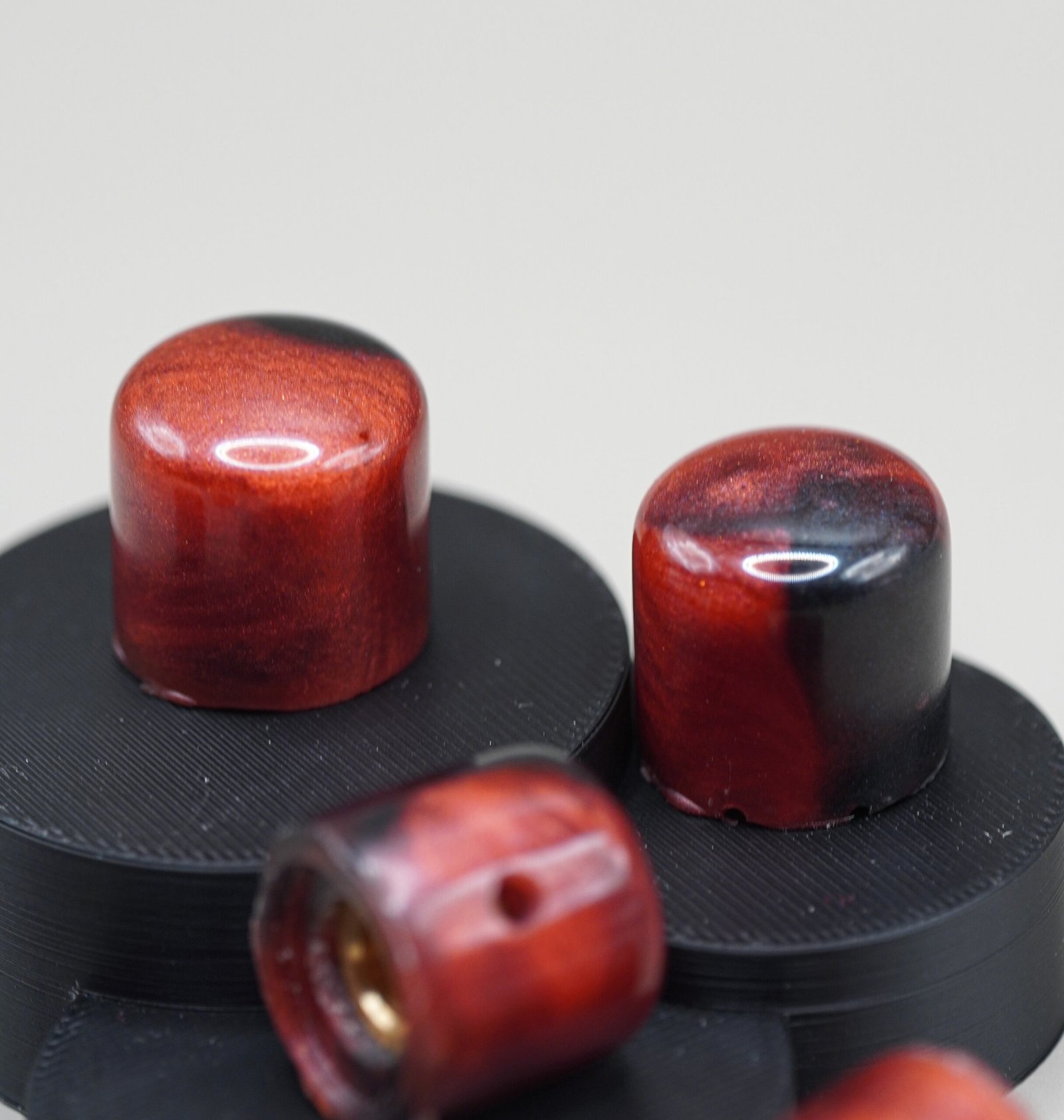Upgrade your guitar with Crimson Ember, a glowing red-and-black resin knob set crafted by Epoxica Guitars™. Each piece features ember-like swirls, glossy depth, and a boutique finish designed to elevate any instrument.