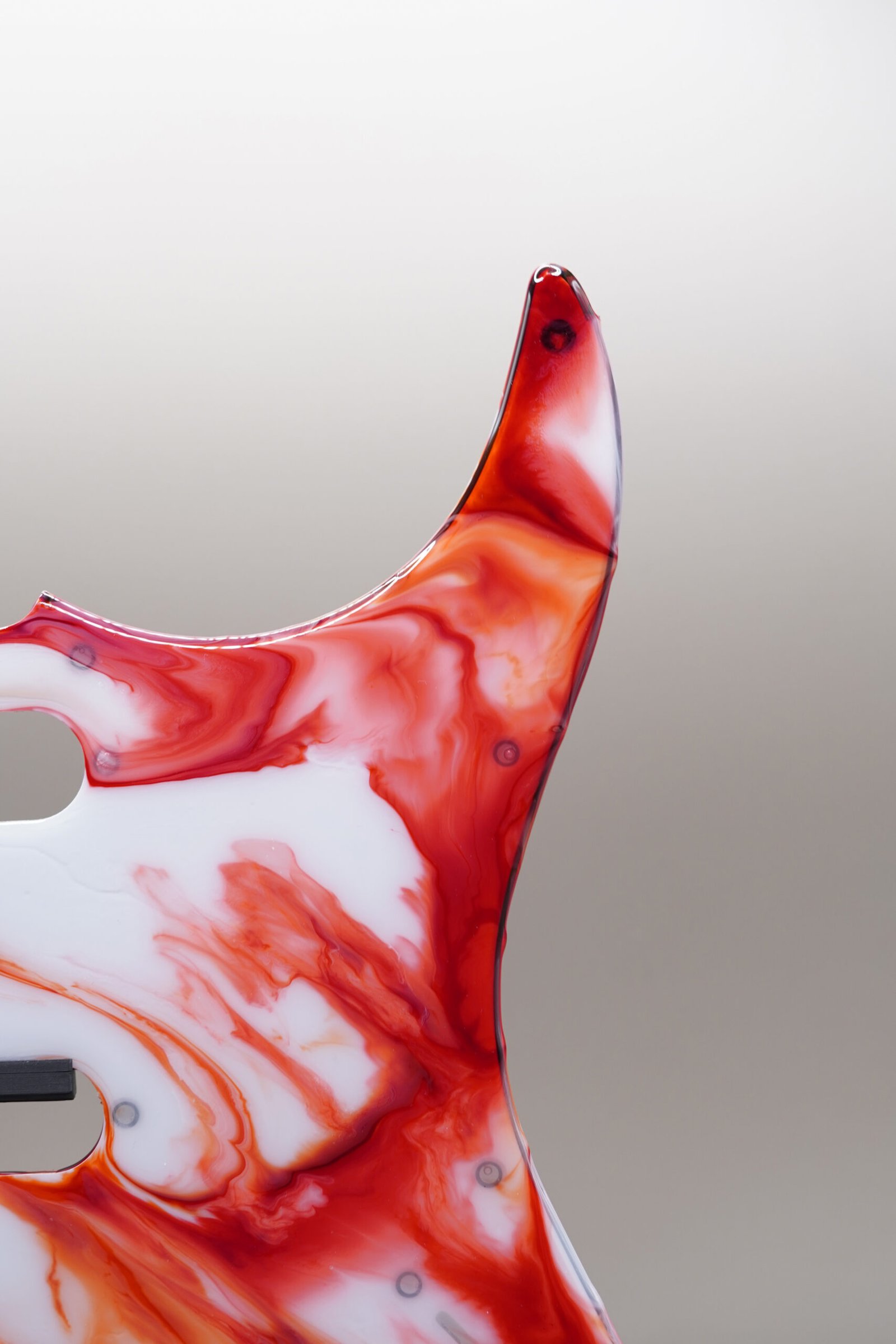 Each piece is individually poured, inked, and polished in the Epoxica workshop. The resin forms natural flowing patterns, making your pickguard truly unique and impossible to replicate.