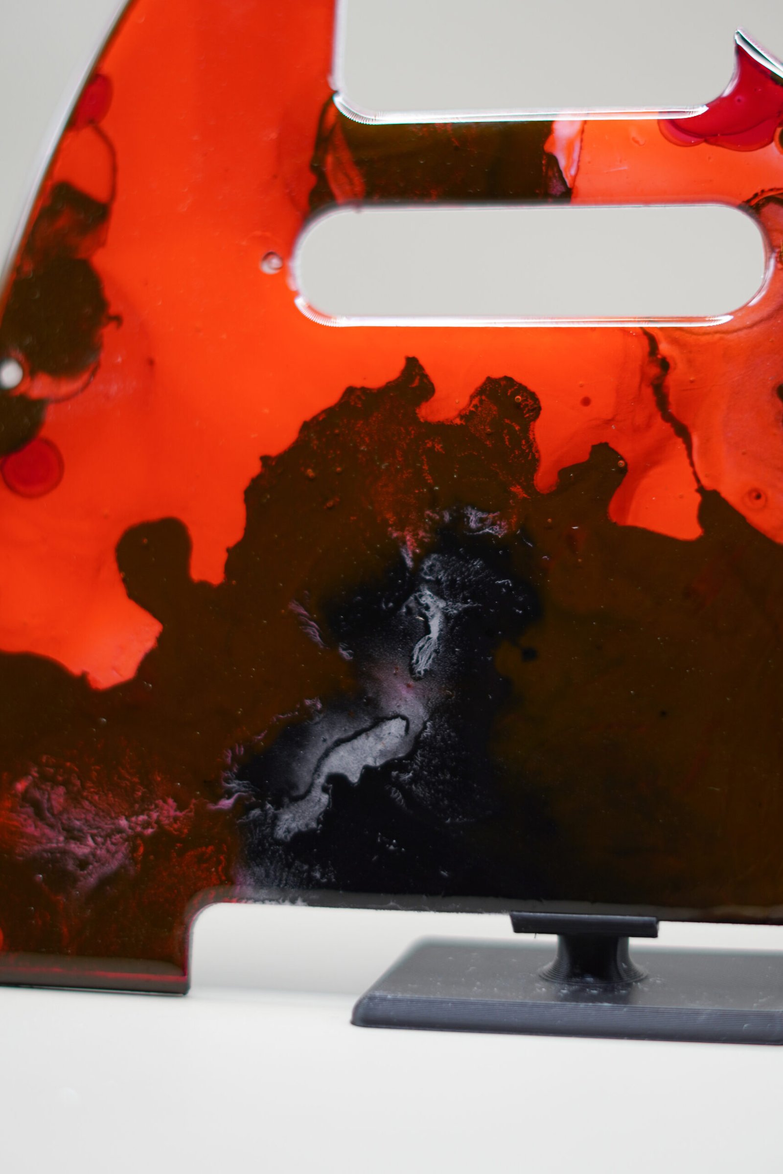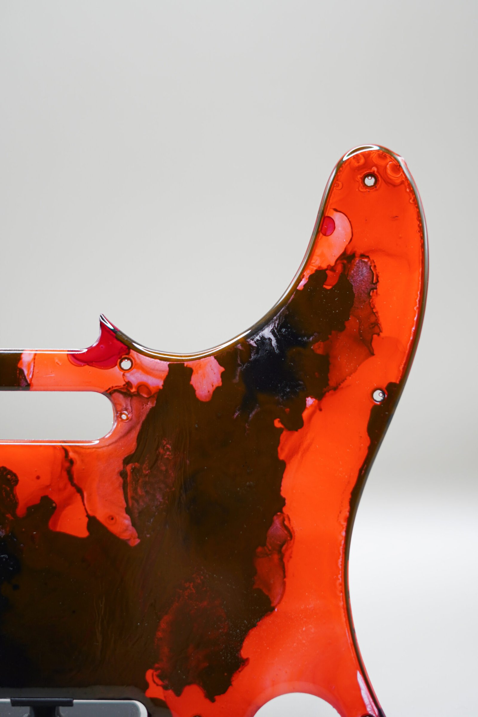 Each pickguard is individually poured, shaped, and polished in the Epoxica workshop. Resin moves naturally in every pour, creating patterns that cannot be replicated—your Fire Scarab pickguard is the only one in existence.