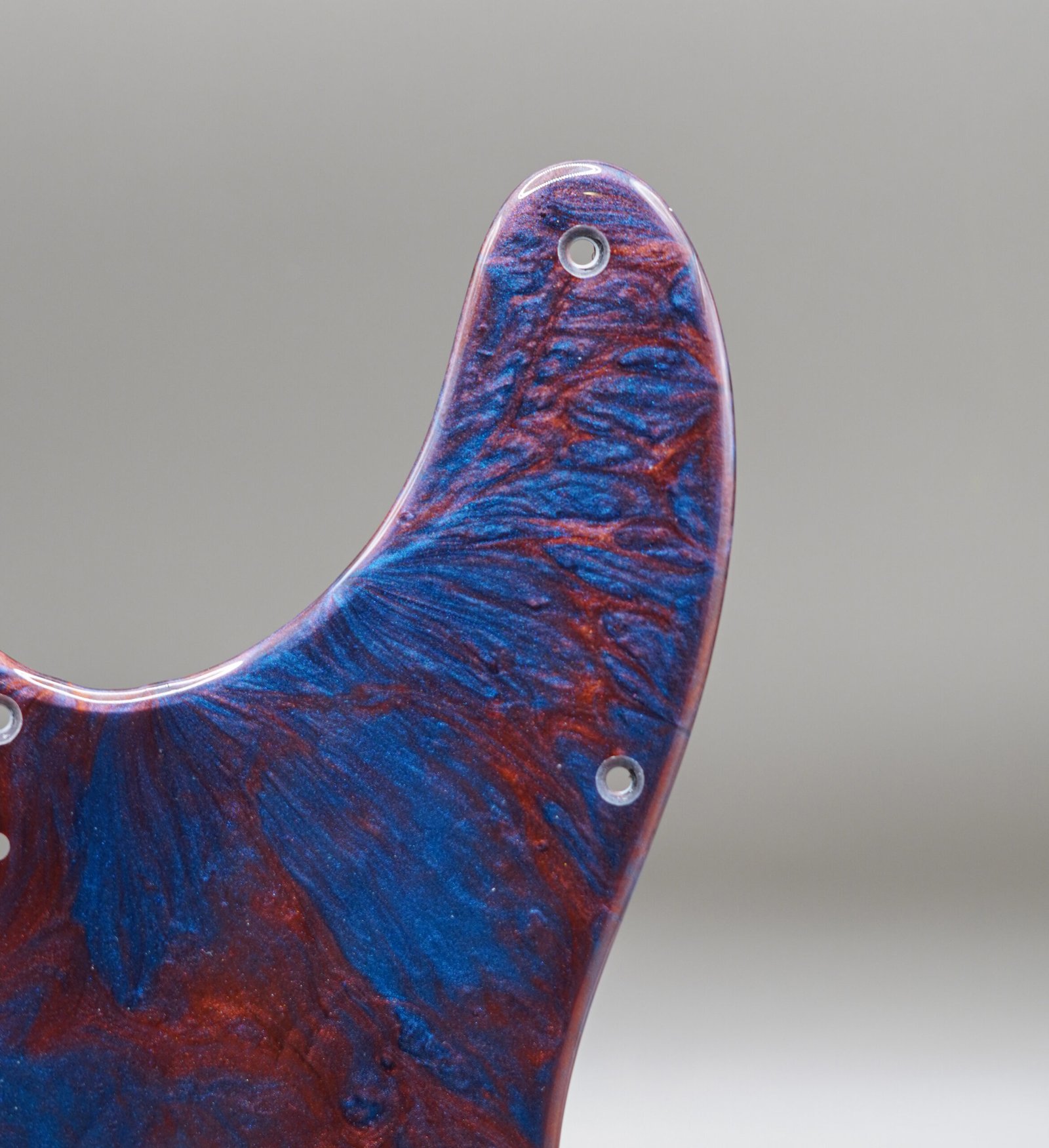 Each pickguard is completely unique — the handmade resin process ensures every swirl and reflection has its own natural artistry.