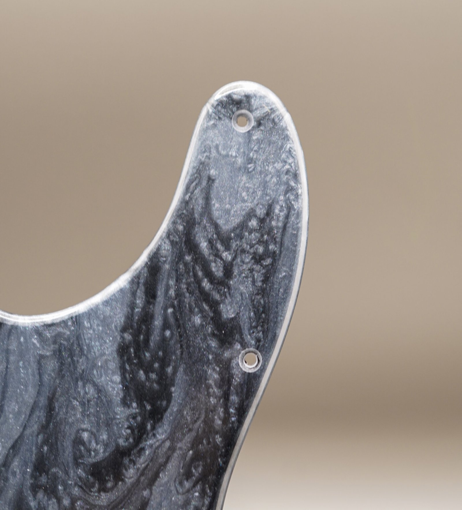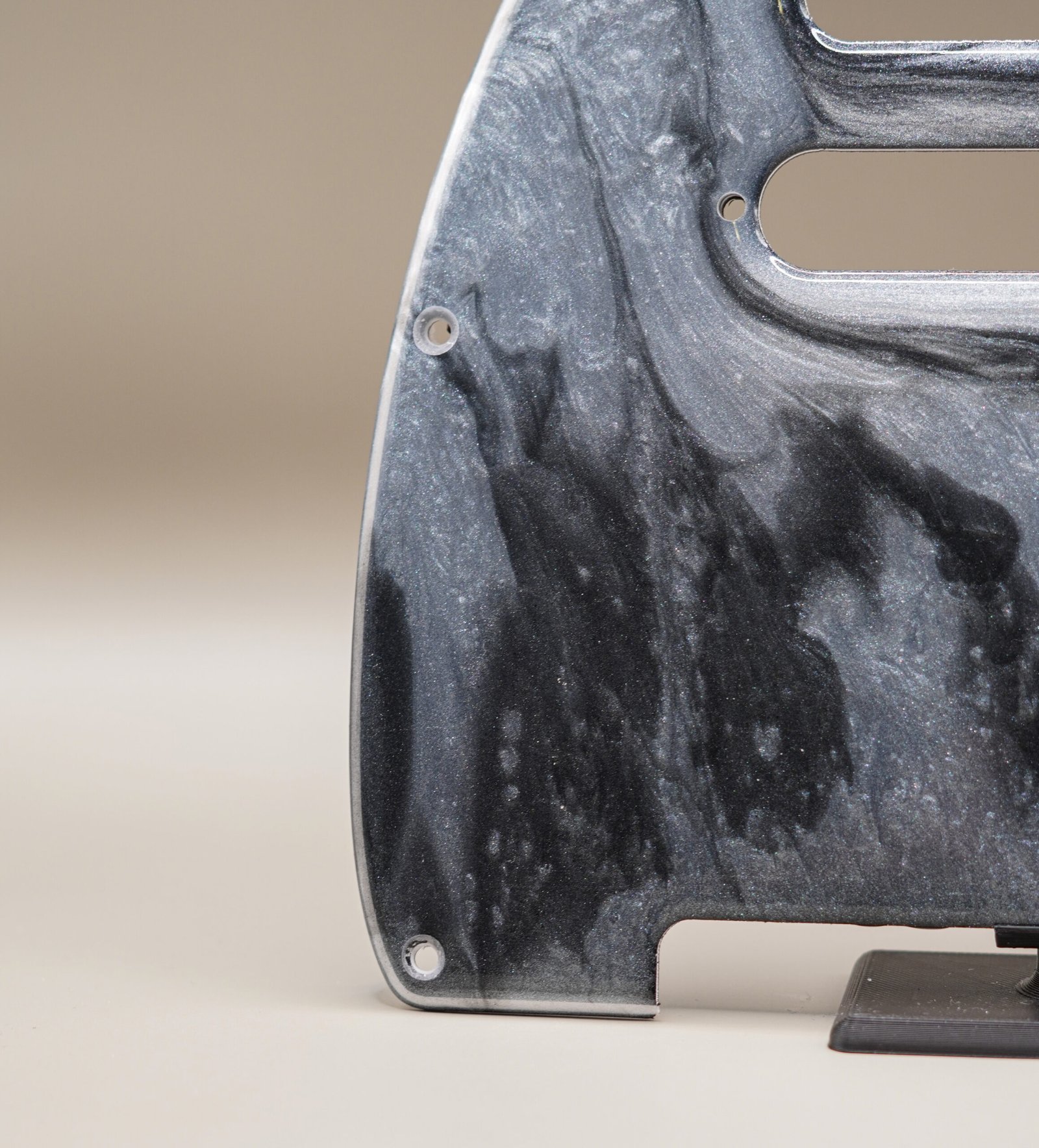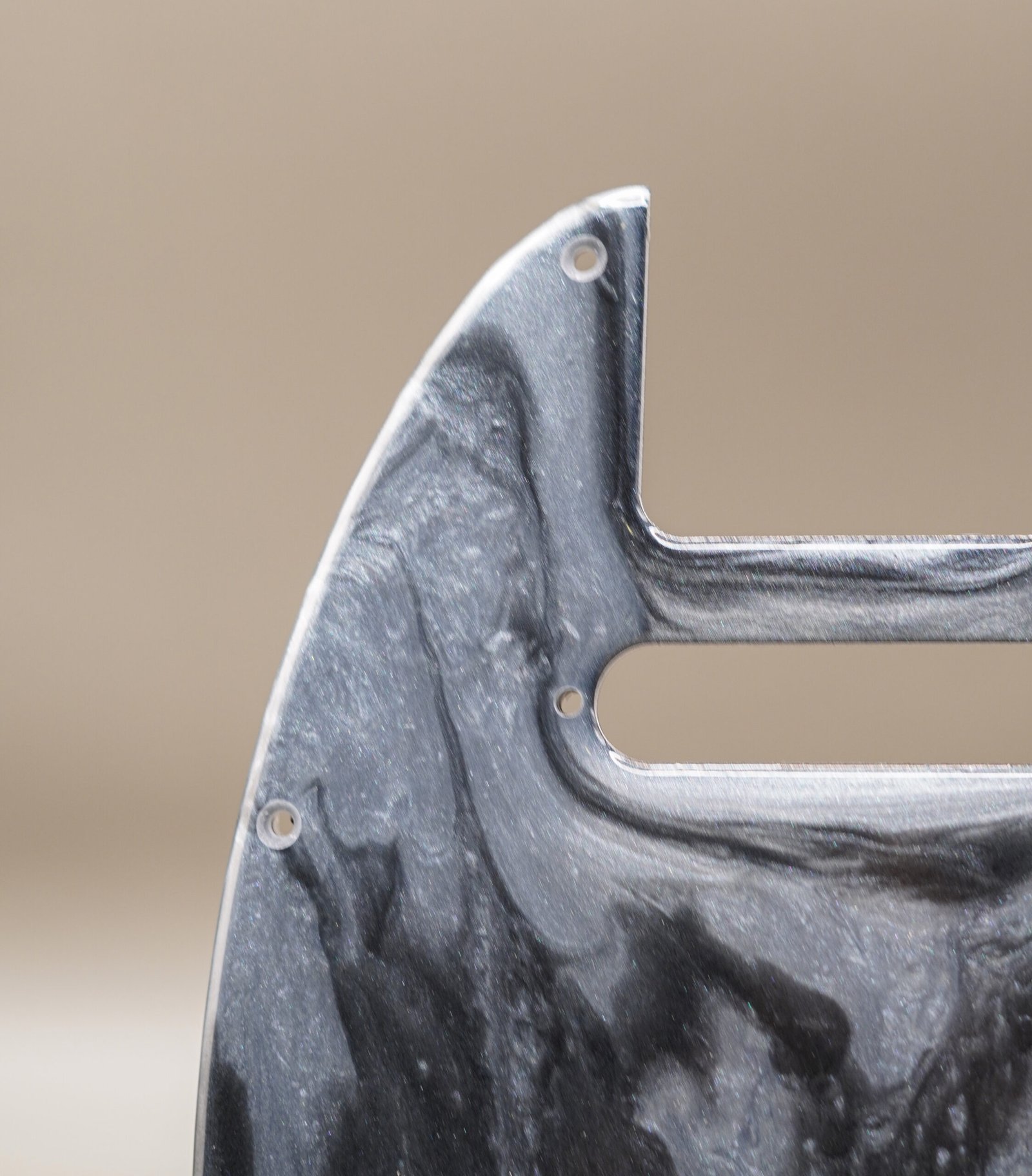 Handcrafted Resin Telecaster Pickguard: Silver & Black Marble Design