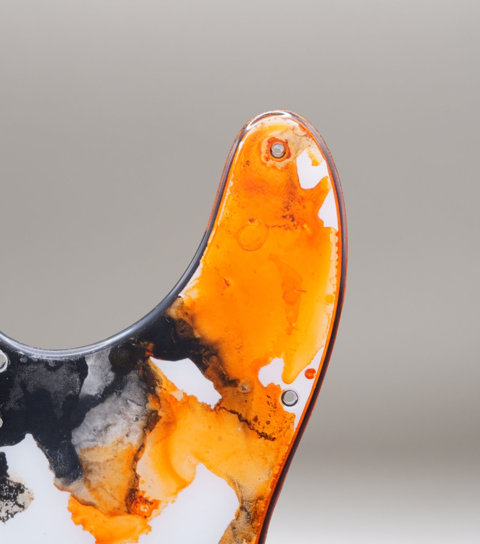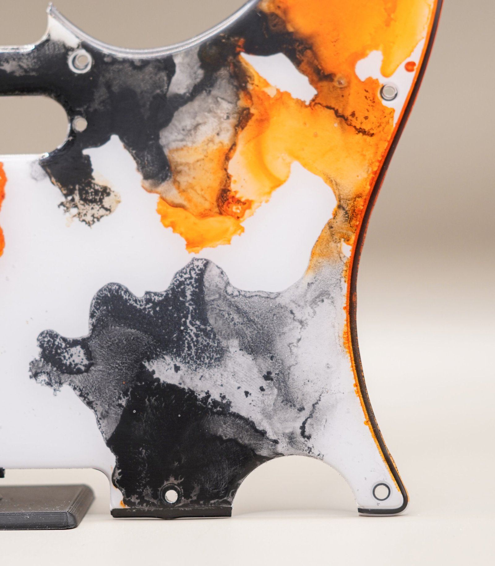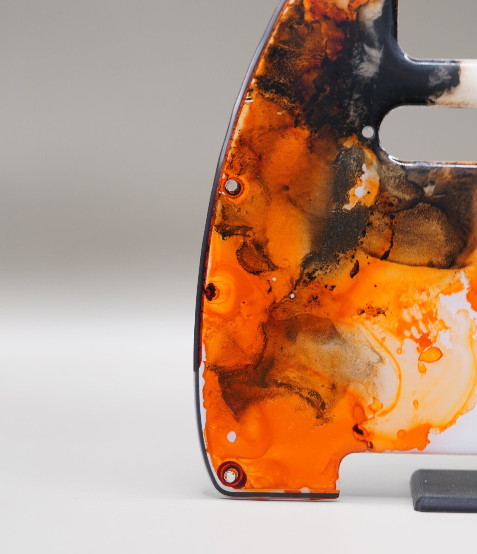 Introducing Koi Rebirth, a one-of-one Telecaster pickguard infused with vibrant orange, smoky black, and crisp white inks. Its flowing patterns mimic the movement of koi swimming through water — energetic, organic, and visually captivating.