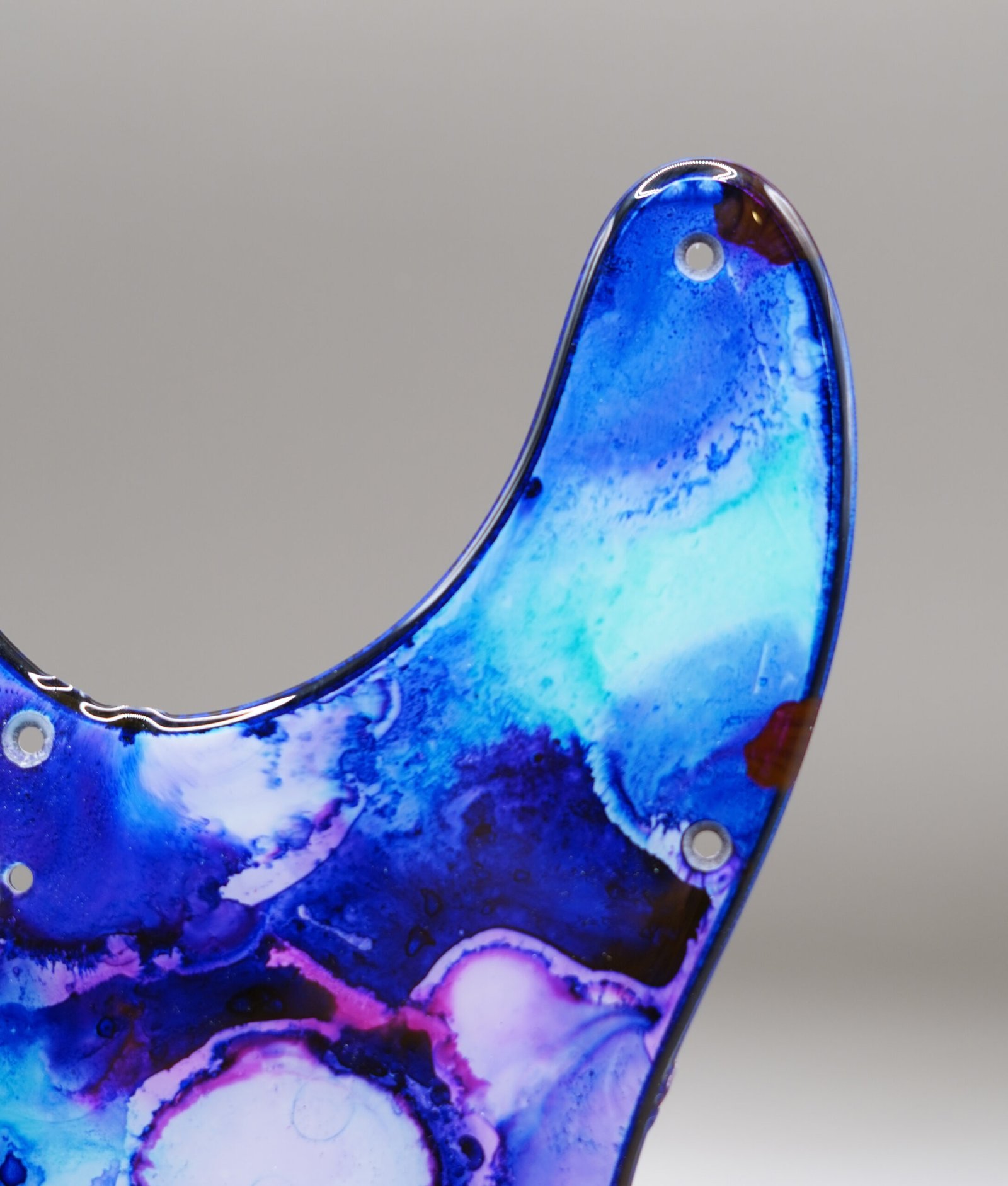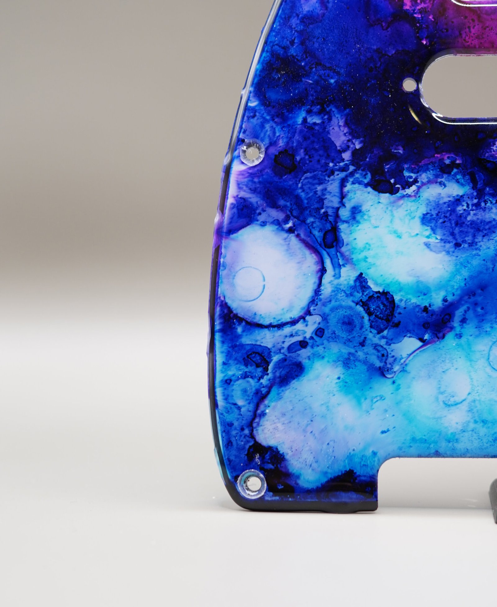 Each pickguard is completely unique — the handmade resin process ensures every swirl and reflection has its own natural artistry.
