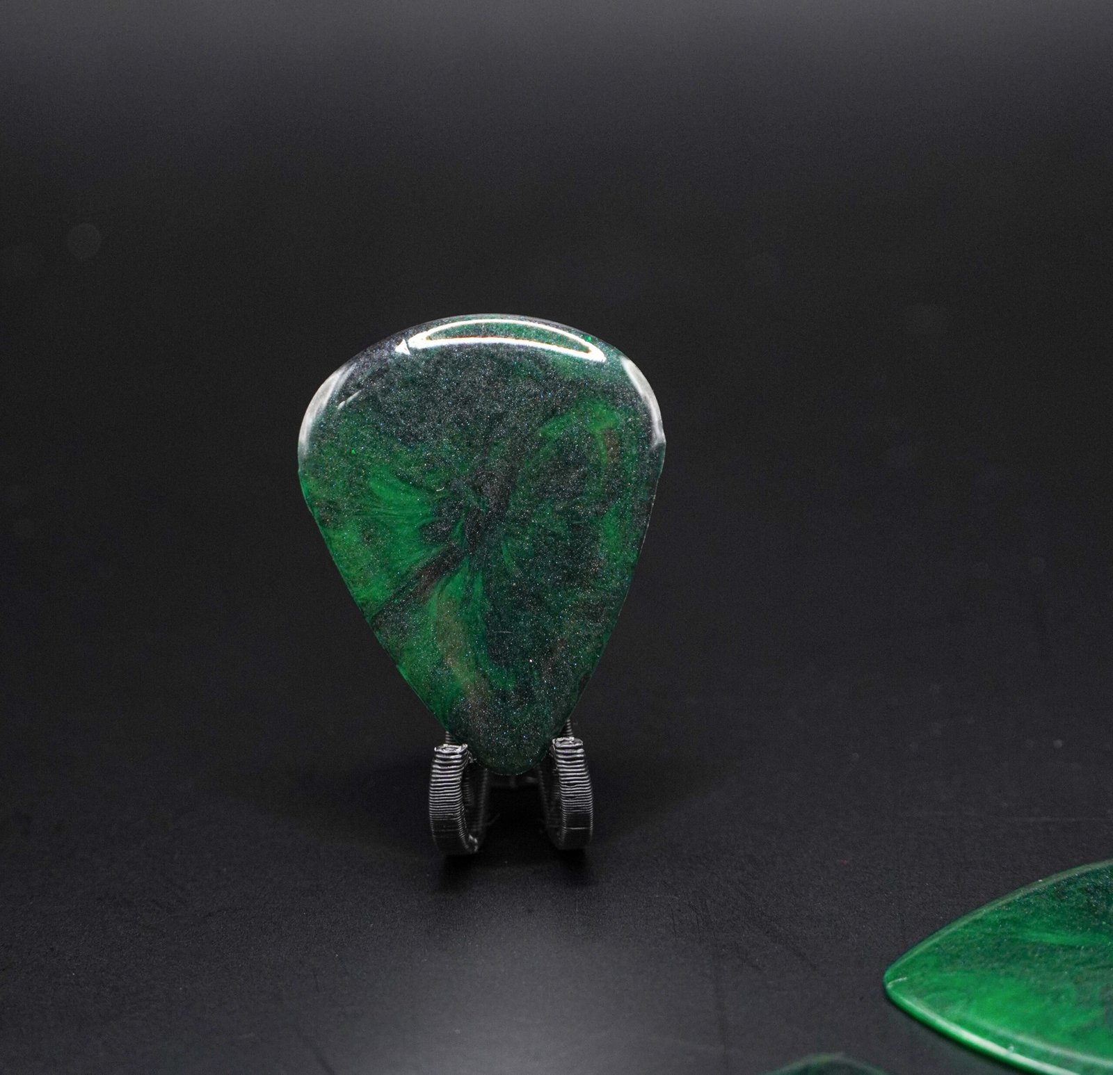 Elevate your tone with the Neon Pulse resin guitar pick — a hand-crafted boutique plectrum charged with vivid neon green energy, suspended in flowing resin layers that glow with motion and intensity. Each pick is individually poured, shaped, and polished in the Epoxica workshop, making every piece a true one-of-one.