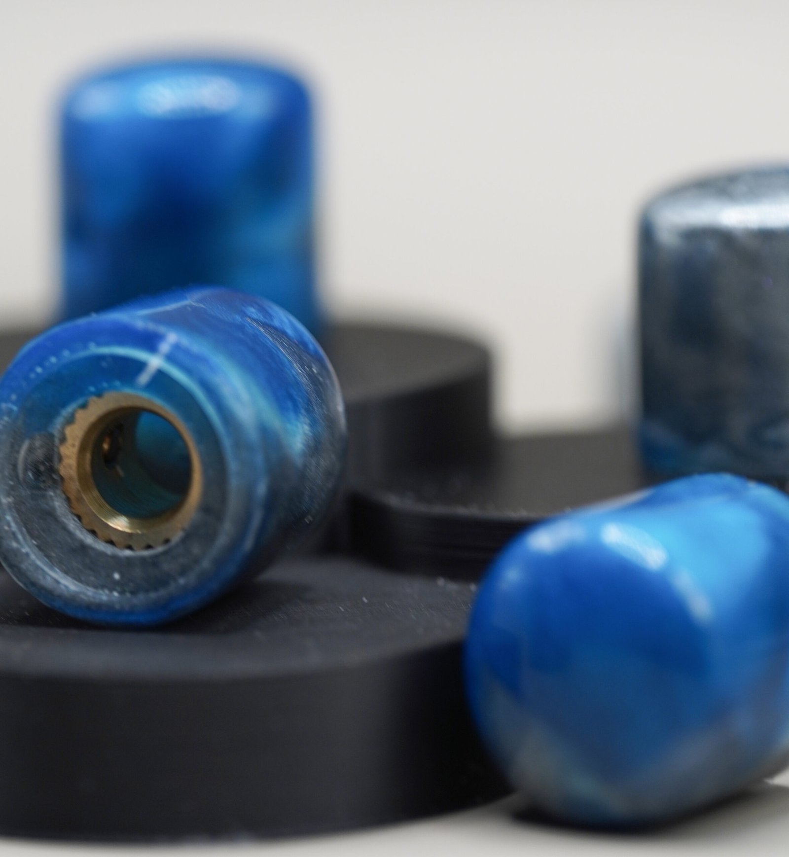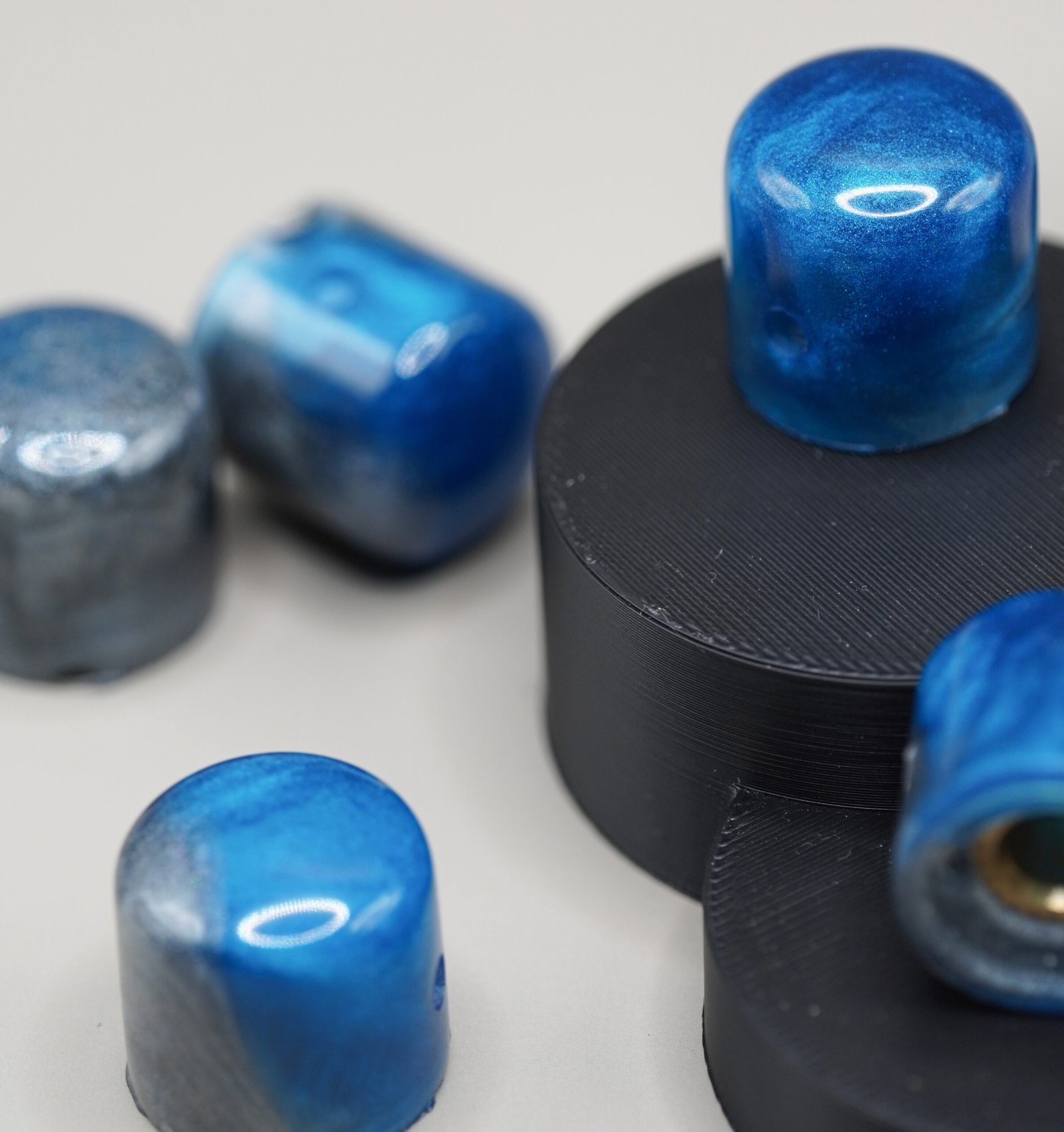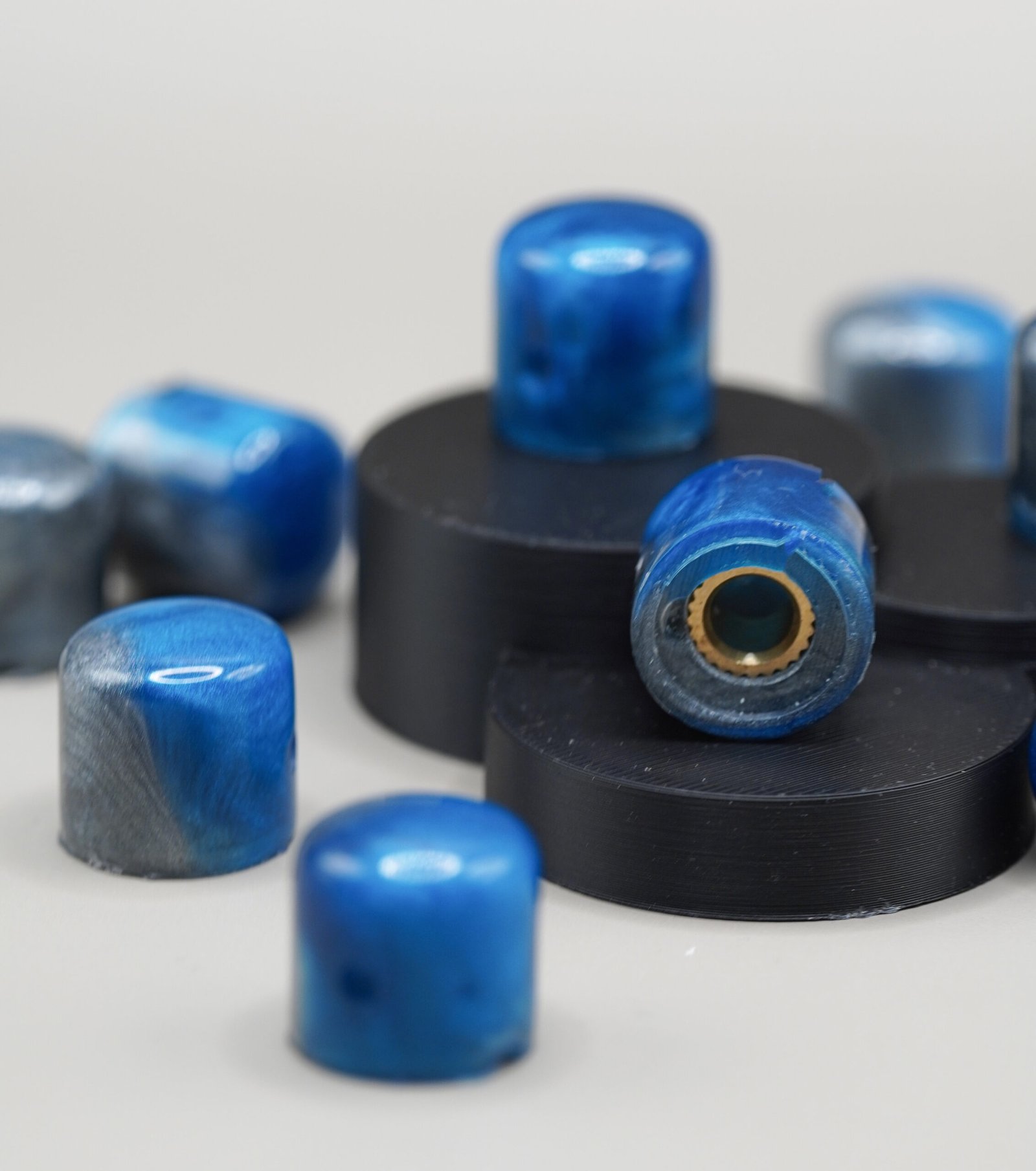 Give your guitar a clean, icy, boutique aesthetic with Sapphire Frost, a hand-poured resin knob set blending vibrant sapphire blue with metallic silver frost tones. Each knob is polished to a glossy finish and features organic swirling patterns that shift beautifully under light.