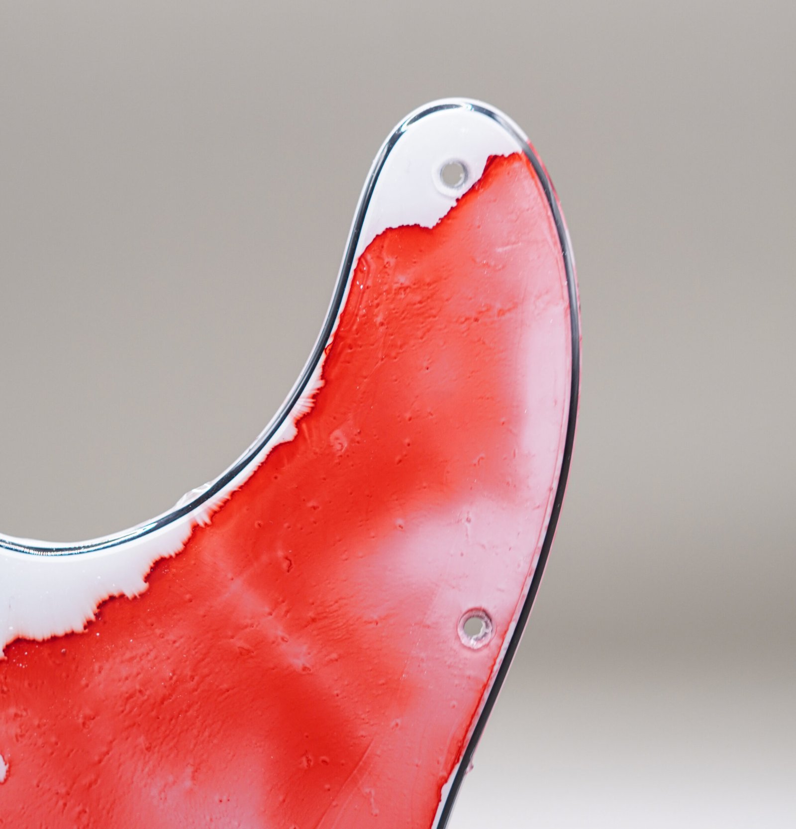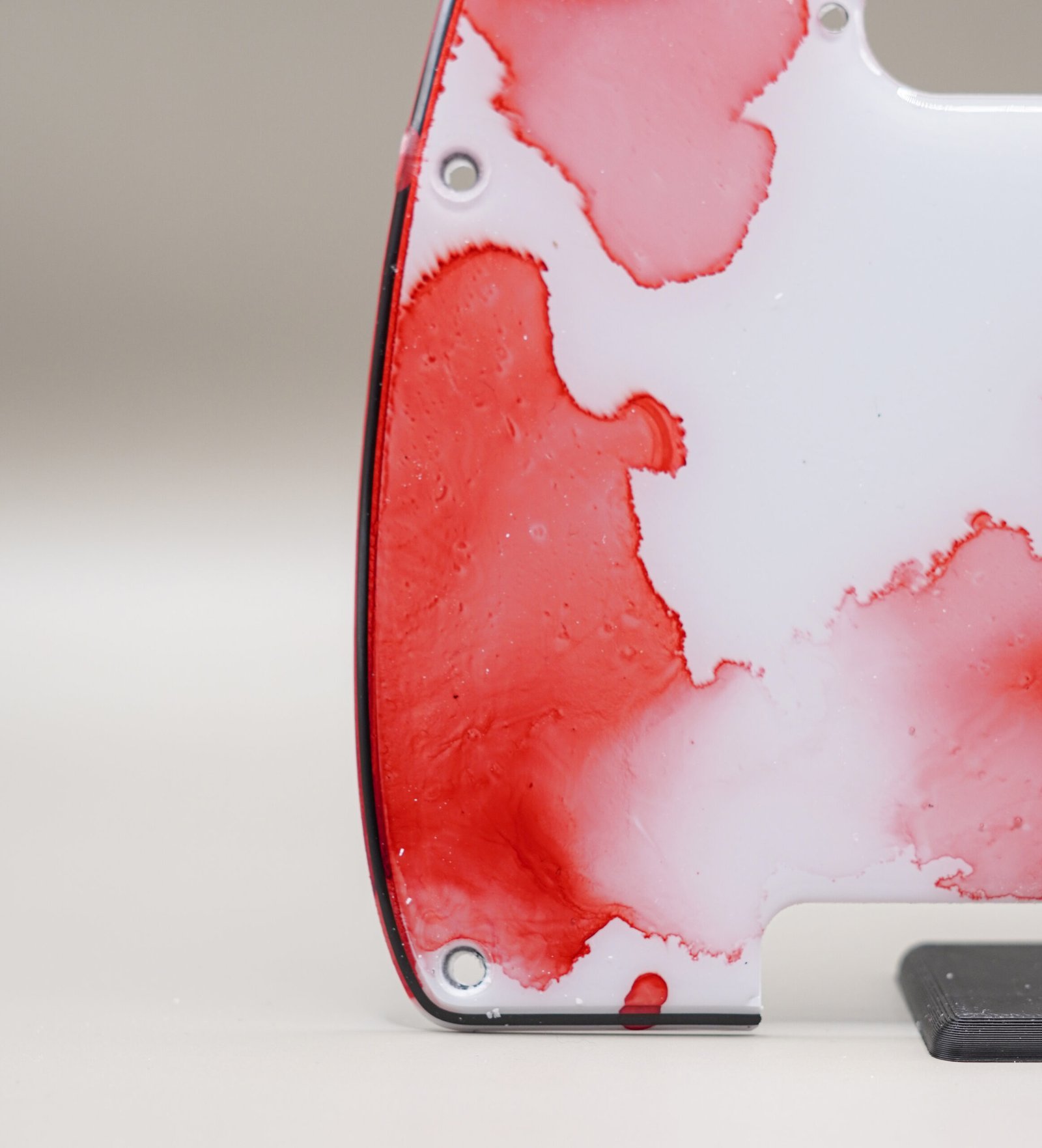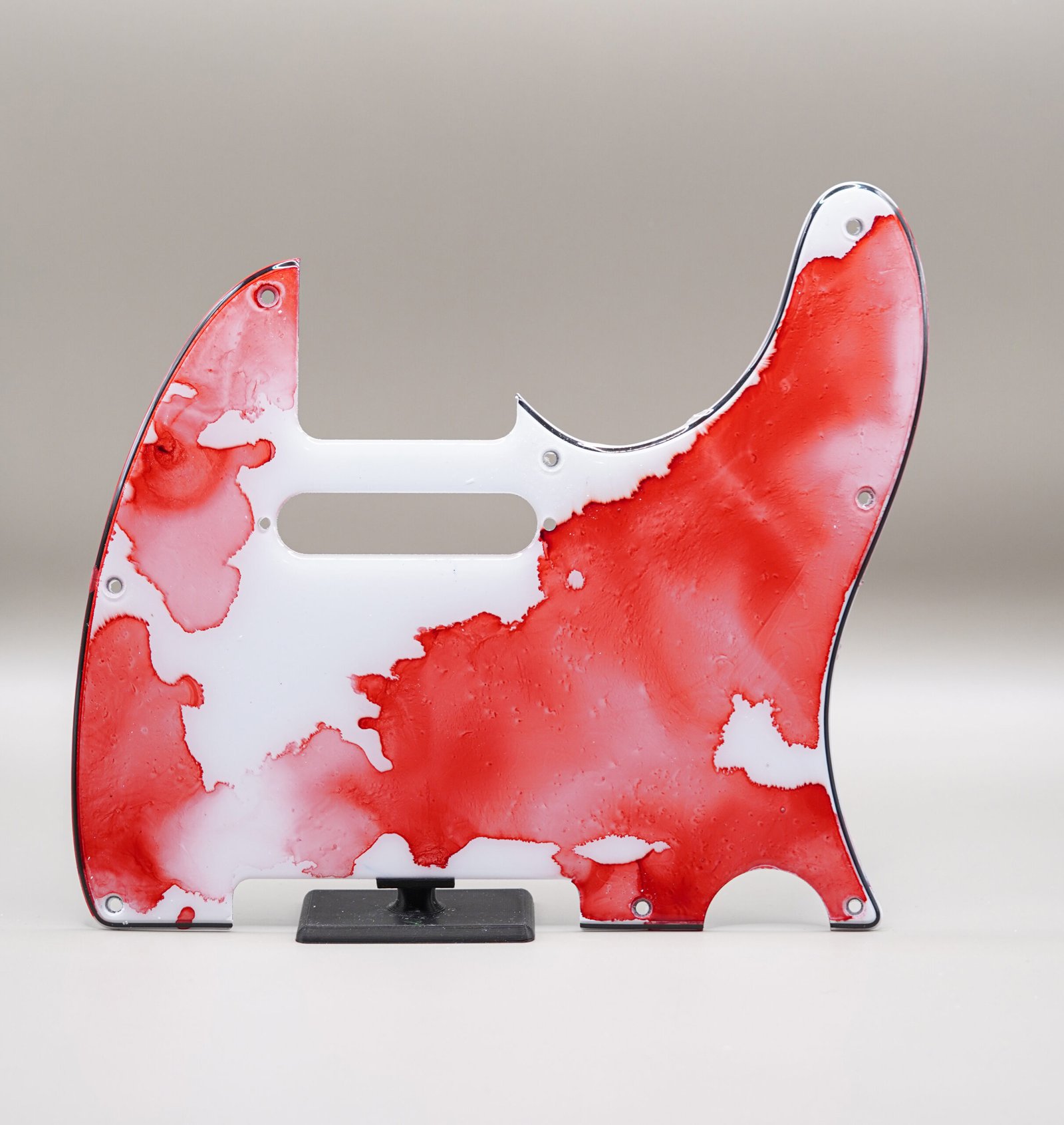 A premium pickguard featuring a bold contrast of scarlet red and pure white, designed to capture the essence of abstract ink art. Finished with a glossy protective layer, this vibrant design gives your Telecaster a modern, high-impact aesthetic.